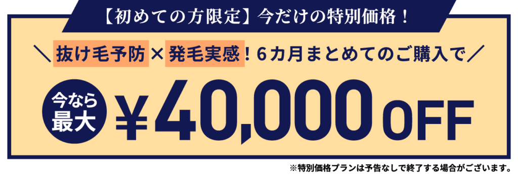 さらに今なら最大40,000円割引キャンペーンを実施しているため、手頃な値段でAGA治療を始められます。
