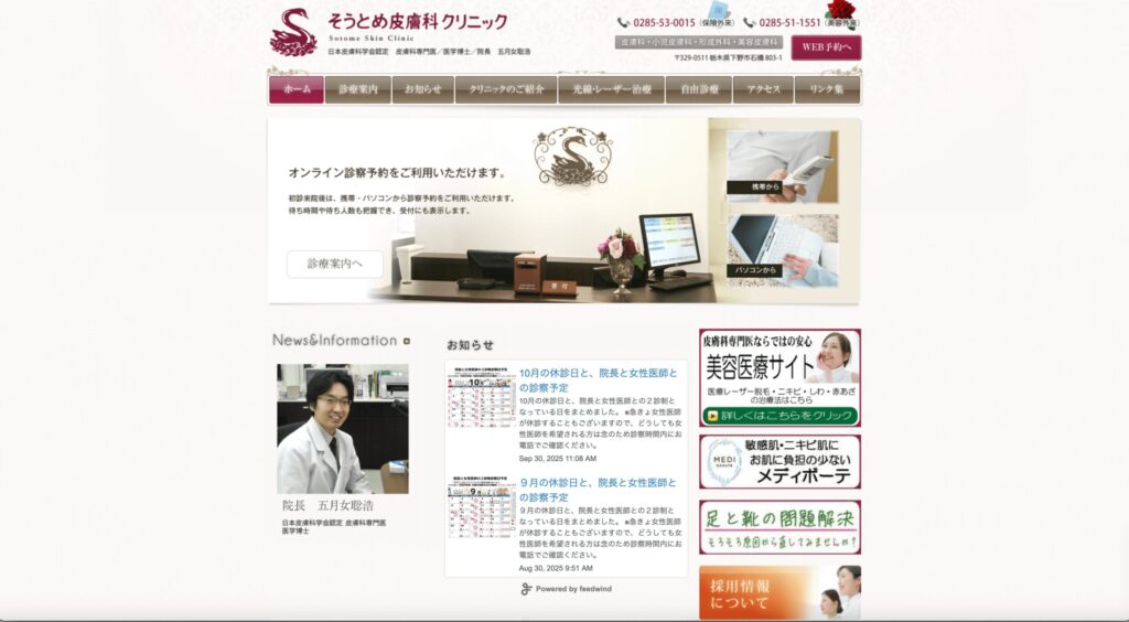 皮膚科としての実績も豊富なため、頭皮の症状や副作用を考慮した対策まで丁寧なサポートをしてもらえる環境がそうとめ皮膚科クリニックの特徴になります。