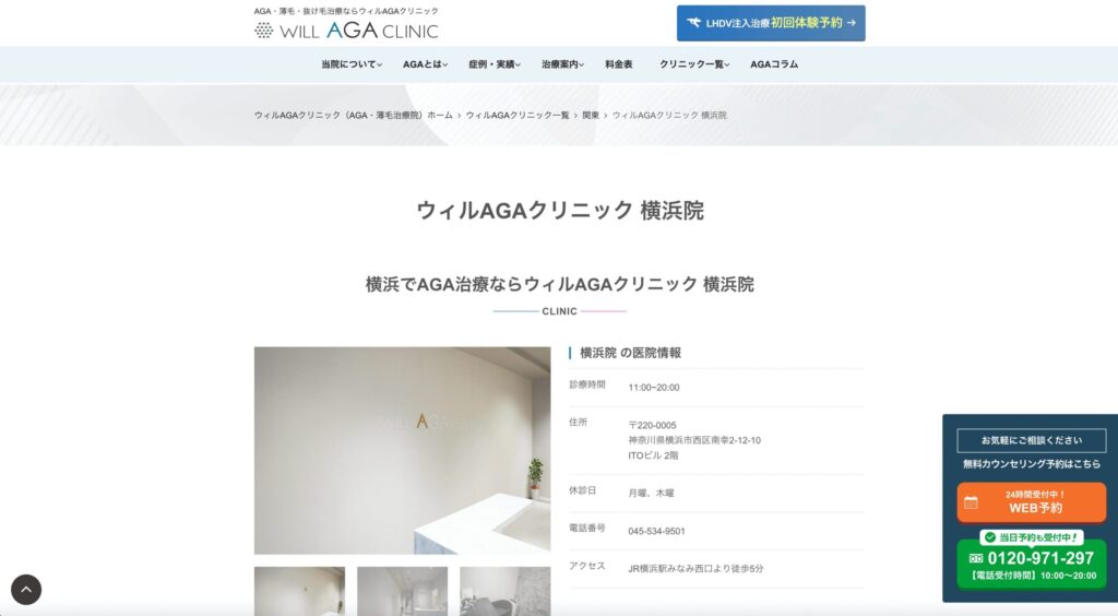 | クリニック名 | AGAスキンクリニック横浜院 |