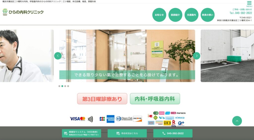 | 診療時間 | 9:00~12:00/14:30~18:00 木・土:12:00まで |